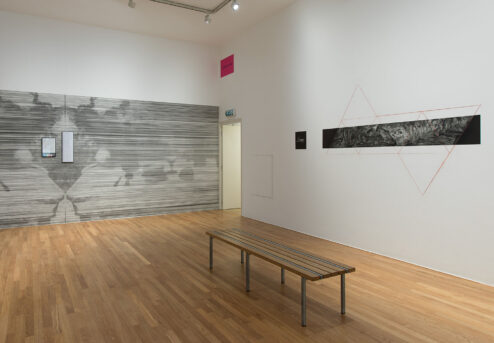 Dallaporta superimposed mathematical shapes on the photos, using pigments of red clay from the Chauvet-Pont-d’Arc Cave. The shapes are derived from the Dymaxion map by Buckminster Fuller, who unfolded, as it were, the entire surface of the earth to make it flat. This created a complete map of the world without either visual distortion or the divisions between continents that artificially split humanity, enabling us to see the world more accurately. Dallaporta’s use of the map is a reference to the anthropological hypothesis that all caves are linked to each other and to the universe as a whole